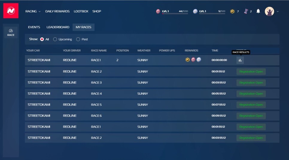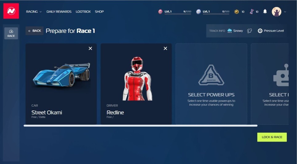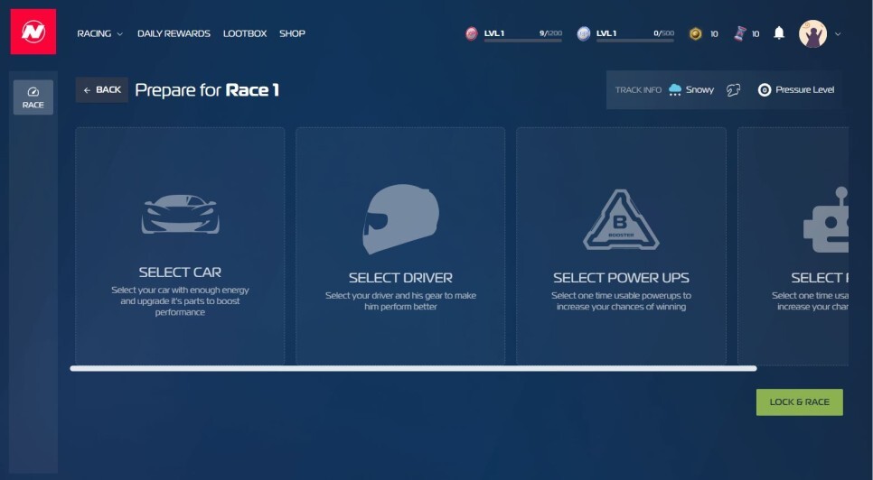그 후 LOCK &RACE 버튼을 클릭하면 등록이 되고 레이스 시작시간이 지나면 자동으로 레이스가 펼쳐지고