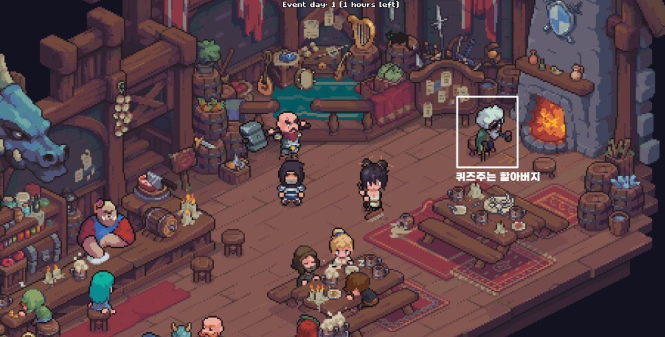 술집으로 가게 되면 저 할아버지 근처에 가서 클릭하면 퀴즈를 줍니다.