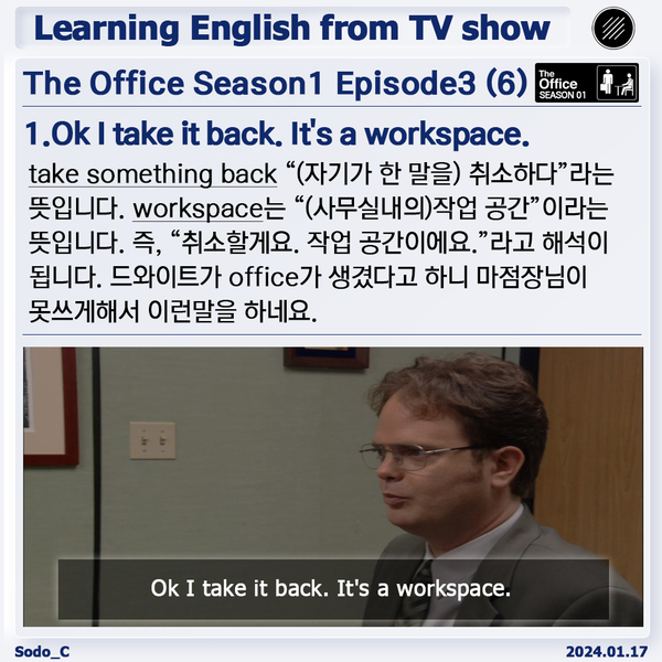 | [Xbyus Study] 1월10일 The Office Season01 Episode03 (2)-암기장(1-4) (1) | 2024.01.10 |